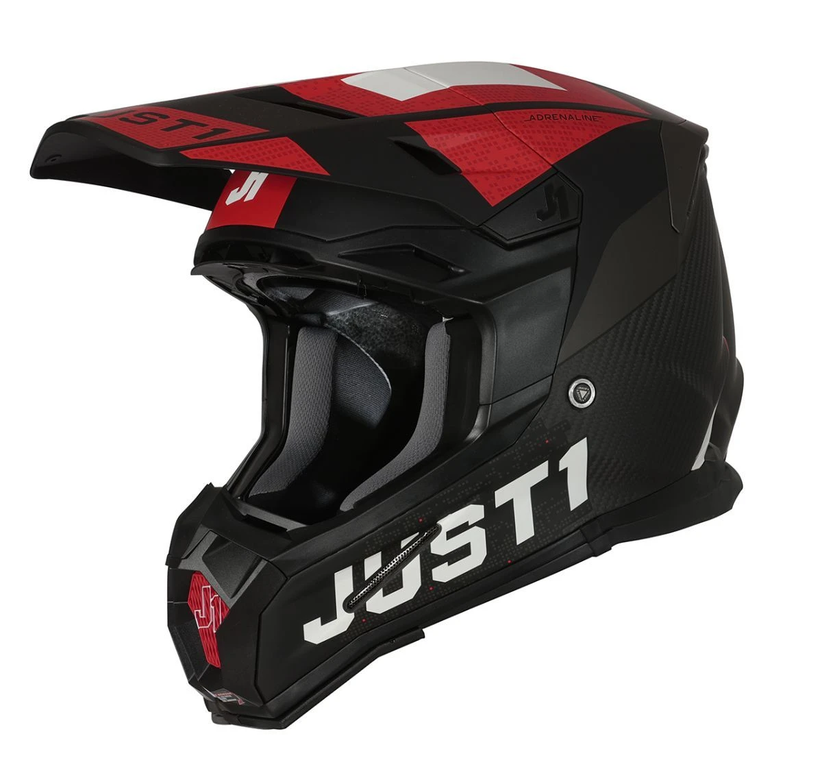 Just1 Helmet J-22 Adrenaline Rood Wit Carbon Mat Crosshelm