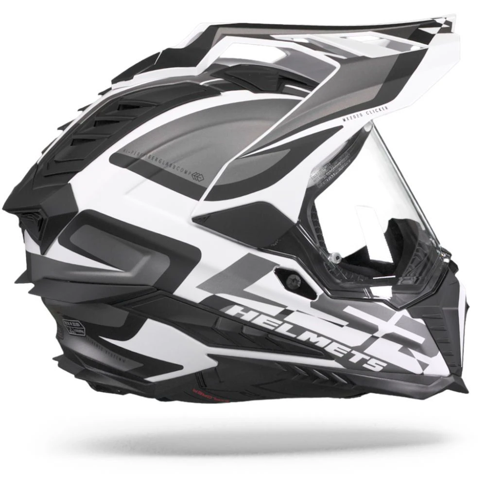De belangrijkste taak van een helm is het bieden van bescherming. De van glasvezel / fiber mix gemaakte wit MX701 Explorer HPFC is over het algemeen sterker dan een polycarbonaat schaal. Deze helmen zijn licht van gewicht, duurzaam en enigszins flexibel, waardoor ze de schokken uitstekend kunnen opvangen. De kinband is een belangrijk onderdeel van de helm bij een botsing en het is ook het onderdeel waar je het meest mee te maken hebt bij het op- en afzetten van de helm. De MX701 Explorer HPFC is voorzien van een Micrometrische sluiting. Dit is een veilige en gebruiksvriendelijke sluiting, die gemakkelijk kan worden bijgesteld en, in tegenstelling tot andere soorten sluitingen, kan deze ook worden bediend met de handschoenen aan. Uiteraard zijn al onze helmen gecertificeerd en legaal voor de Europese wegen, aangezien deze helm ECE 22.05 is goedgekeurd.