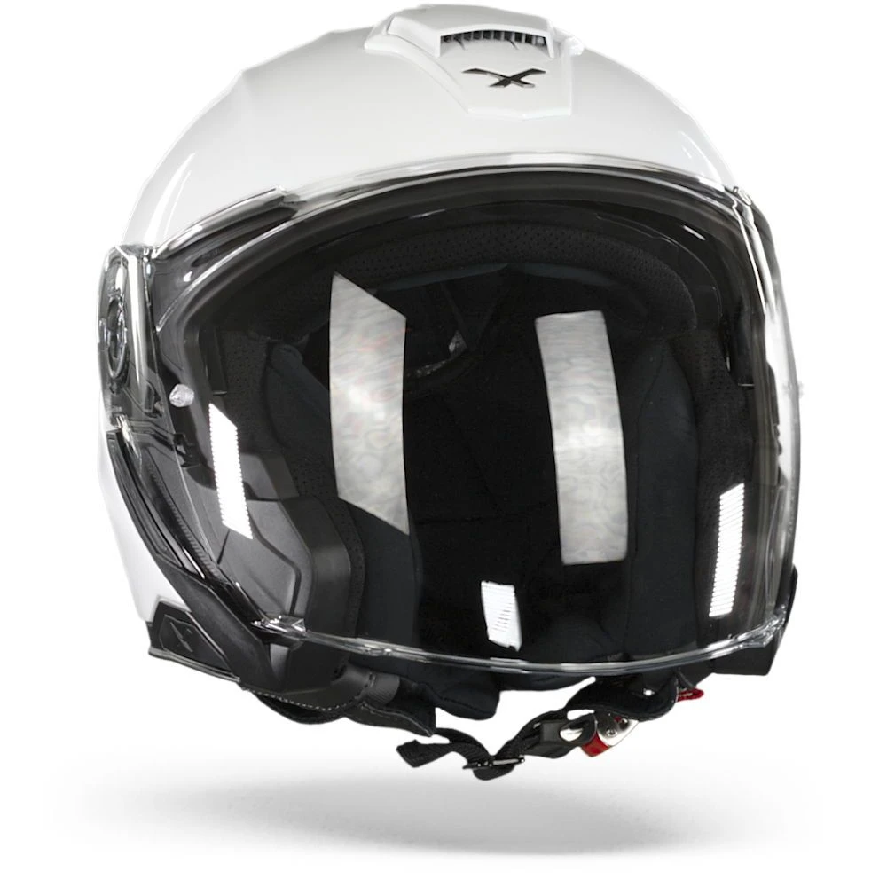 De belangrijkste taak van een helm is het bieden van bescherming. De van glasvezel / fiber mix gemaakte wit X.Viliby is over het algemeen sterker dan een polycarbonaat schaal. Deze helmen zijn licht van gewicht, duurzaam en enigszins flexibel, waardoor ze de schokken uitstekend kunnen opvangen. De kinband is een belangrijk onderdeel van de helm bij een botsing en het is ook het onderdeel waar je het meest mee te maken hebt bij het op- en afzetten van de helm. De X.Viliby is voorzien van een Micrometrische sluiting. Dit is een veilige en gebruiksvriendelijke sluiting, die gemakkelijk kan worden bijgesteld en, in tegenstelling tot andere soorten sluitingen, kan deze ook worden bediend met de handschoenen aan. Uiteraard zijn al onze helmen gecertificeerd en legaal voor de Europese wegen, aangezien deze helm ECE 22.05 is goedgekeurd.