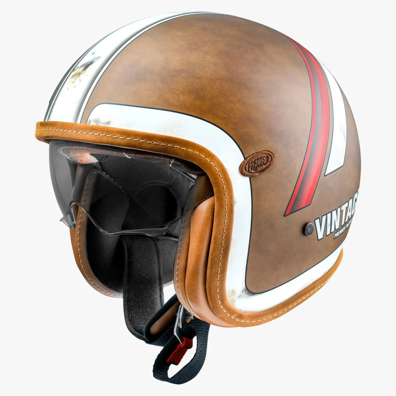 De belangrijkste taak van een helm is het bieden van bescherming. De van glasvezel / fiber mix gemaakte bruin Vintage Platinum Edition is over het algemeen sterker dan een polycarbonaat schaal. Deze helmen zijn licht van gewicht, duurzaam en enigszins flexibel, waardoor ze de schokken uitstekend kunnen opvangen. De kinband is een belangrijk onderdeel van de helm bij een botsing en het is ook het onderdeel waar je het meest mee te maken hebt bij het op- en afzetten van de helm. De Vintage Platinum Edition is voorzien van een Dubbel-D sluiting. Dit is waarschijnlijk de oudste stijl sluiting en heeft het eenvoudigste ontwerp. Toch wordt hij tot op heden als de veiligste beschouwd en zijn Dubbel-D kinsluitingen de enige die op het circuit zijn toegestaan. Uiteraard zijn al onze helmen gecertificeerd en legaal voor de Europese wegen, aangezien deze helm ECE 22.05 is goedgekeurd.