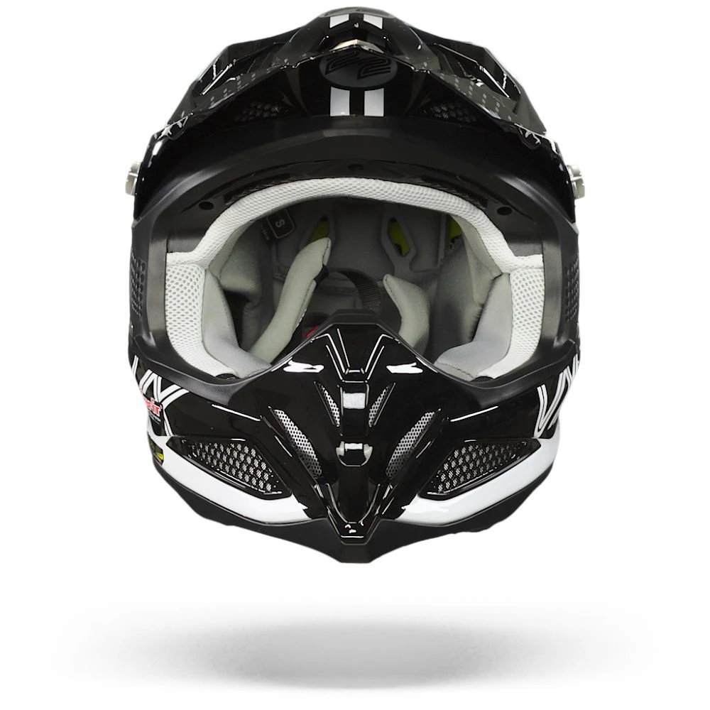 De belangrijkste taak van een helm is het bieden van bescherming. De van glasvezel / fiber mix gemaakte zwart VX-22 Air is over het algemeen sterker dan een polycarbonaat schaal. Deze helmen zijn licht van gewicht, duurzaam en enigszins flexibel, waardoor ze de schokken uitstekend kunnen opvangen. De kinband is een belangrijk onderdeel van de helm bij een botsing en het is ook het onderdeel waar je het meest mee te maken hebt bij het op- en afzetten van de helm. De VX-22 Air is voorzien van een Dubbel-D sluiting. Dit is waarschijnlijk de oudste stijl sluiting en heeft het eenvoudigste ontwerp. Toch wordt hij tot op heden als de veiligste beschouwd en zijn Dubbel-D kinsluitingen de enige die op het circuit zijn toegestaan. Uiteraard zijn al onze helmen gecertificeerd en legaal voor de Europese wegen, aangezien deze helm ECE 22.06 is goedgekeurd.