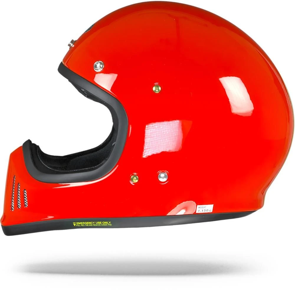 De belangrijkste taak van een helm is het bieden van bescherming. De van glasvezel / fiber mix gemaakte rood Ex-Zero is over het algemeen sterker dan een polycarbonaat schaal. Deze helmen zijn licht van gewicht, duurzaam en enigszins flexibel, waardoor ze de schokken uitstekend kunnen opvangen. De kinband is een belangrijk onderdeel van de helm bij een botsing en het is ook het onderdeel waar je het meest mee te maken hebt bij het op- en afzetten van de helm. De Ex-Zero is voorzien van een Dubbel-D sluiting. Dit is waarschijnlijk de oudste stijl sluiting en heeft het eenvoudigste ontwerp. Toch wordt hij tot op heden als de veiligste beschouwd en zijn Dubbel-D kinsluitingen de enige die op het circuit zijn toegestaan. Uiteraard zijn al onze helmen gecertificeerd en legaal voor de Europese wegen, aangezien deze helm ECE 22.05 is goedgekeurd.