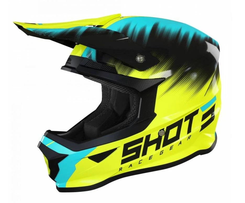 SHOT Furious Kid Versus Neon Geel Turquoise Glanzend Crosshelm