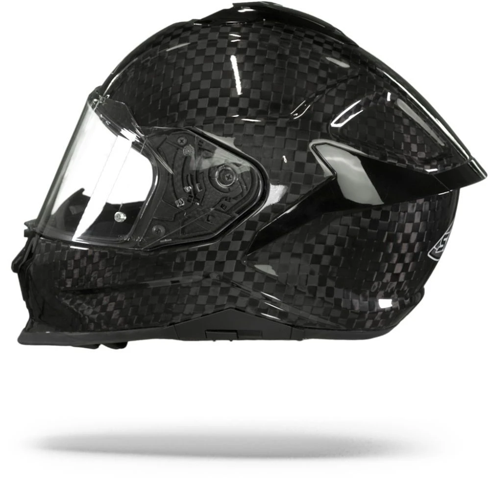 De belangrijkste taak van een helm is het bieden van bescherming. De van carbon gemaakte zwart Titan biedt het voordeel van een zeer lichte constructie en het verdeelt de energie uitstekend bij impact. Bovendien ziet het er stoer uit! De kinband is een belangrijk onderdeel van de helm bij een botsing en het is ook het onderdeel waar je het meest mee te maken hebt bij het op- en afzetten van de helm. De Titan is voorzien van een Micrometrische sluiting. Dit is een veilige en gebruiksvriendelijke sluiting, die gemakkelijk kan worden bijgesteld en, in tegenstelling tot andere soorten sluitingen, kan deze ook worden bediend met de handschoenen aan. Uiteraard zijn al onze helmen gecertificeerd en legaal voor gebruik op de Europese wegen, aangezien deze helm ECE 22.05 is gekeurd.