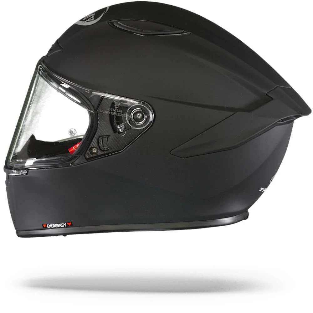 De belangrijkste taak van een helm is het bieden van bescherming. De van glasvezel / fiber mix gemaakte zwart Track 1 is over het algemeen sterker dan een polycarbonaat schaal. Deze helmen zijn licht van gewicht, duurzaam en enigszins flexibel, waardoor ze de schokken uitstekend kunnen opvangen. De kinband is een belangrijk onderdeel van de helm bij een botsing en het is ook het onderdeel waar je het meest mee te maken hebt bij het op- en afzetten van de helm. De Track 1 is voorzien van een Dubbel-D sluiting. Dit is waarschijnlijk de oudste stijl sluiting en heeft het eenvoudigste ontwerp. Toch wordt hij tot op heden als de veiligste beschouwd en zijn Dubbel-D kinsluitingen de enige die op het circuit zijn toegestaan. Uiteraard zijn al onze helmen gecertificeerd en legaal voor gebruik op de Europese wegen, aangezien deze helm ECE 22.05 is gekeurd.